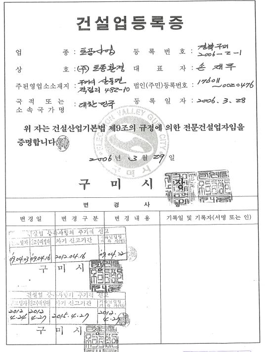 건설업등록증